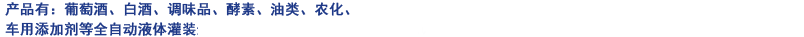 产品有:葡萄酒、白酒、调味品、酵素、油类、农化等全自动液体灌装生产线